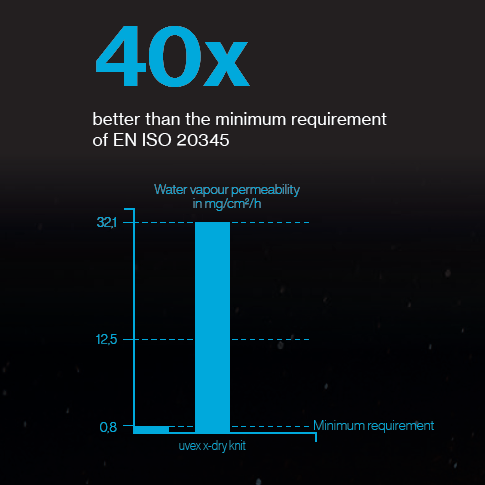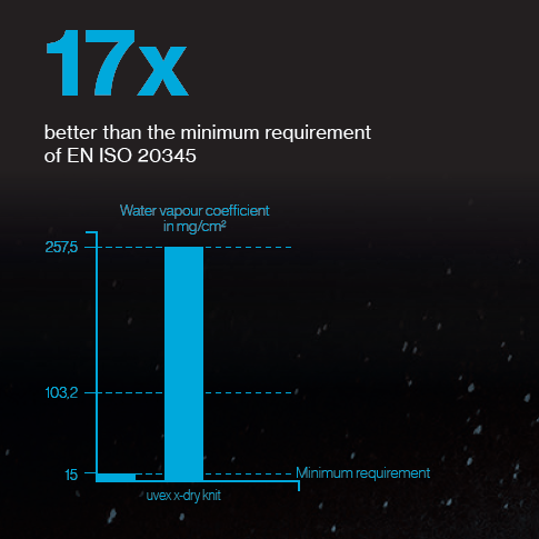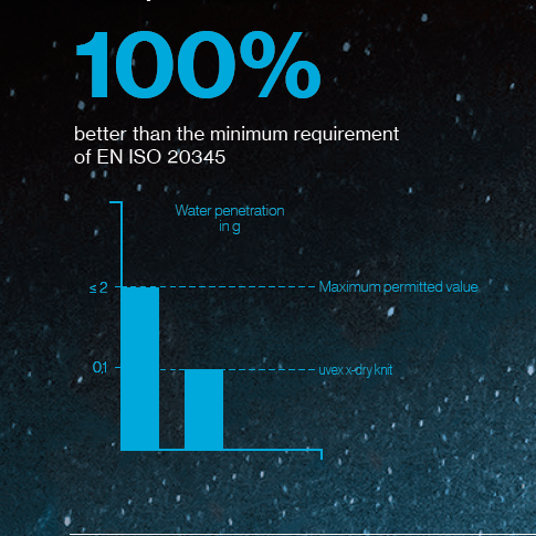 uvex x-dry knit Technology. 100% performance. 100% wearer comfort. 100% dry feet.