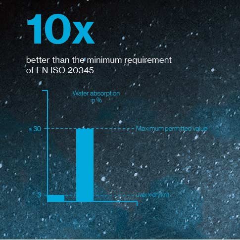 10x better water absorption than the minimum requirement of EN ISO 20345