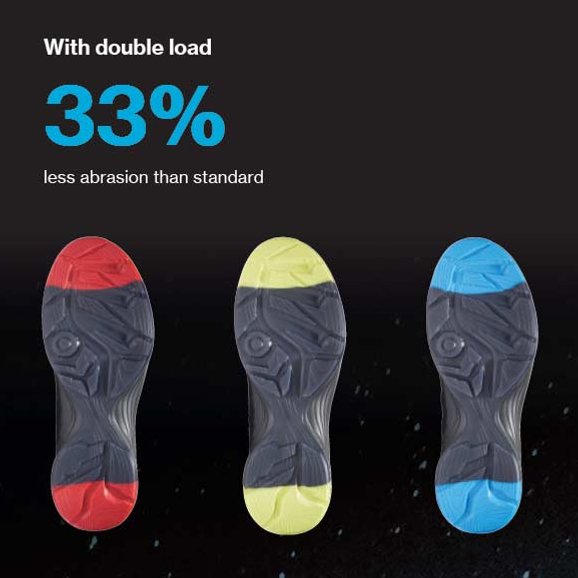 33% less abrasion than standard with double load